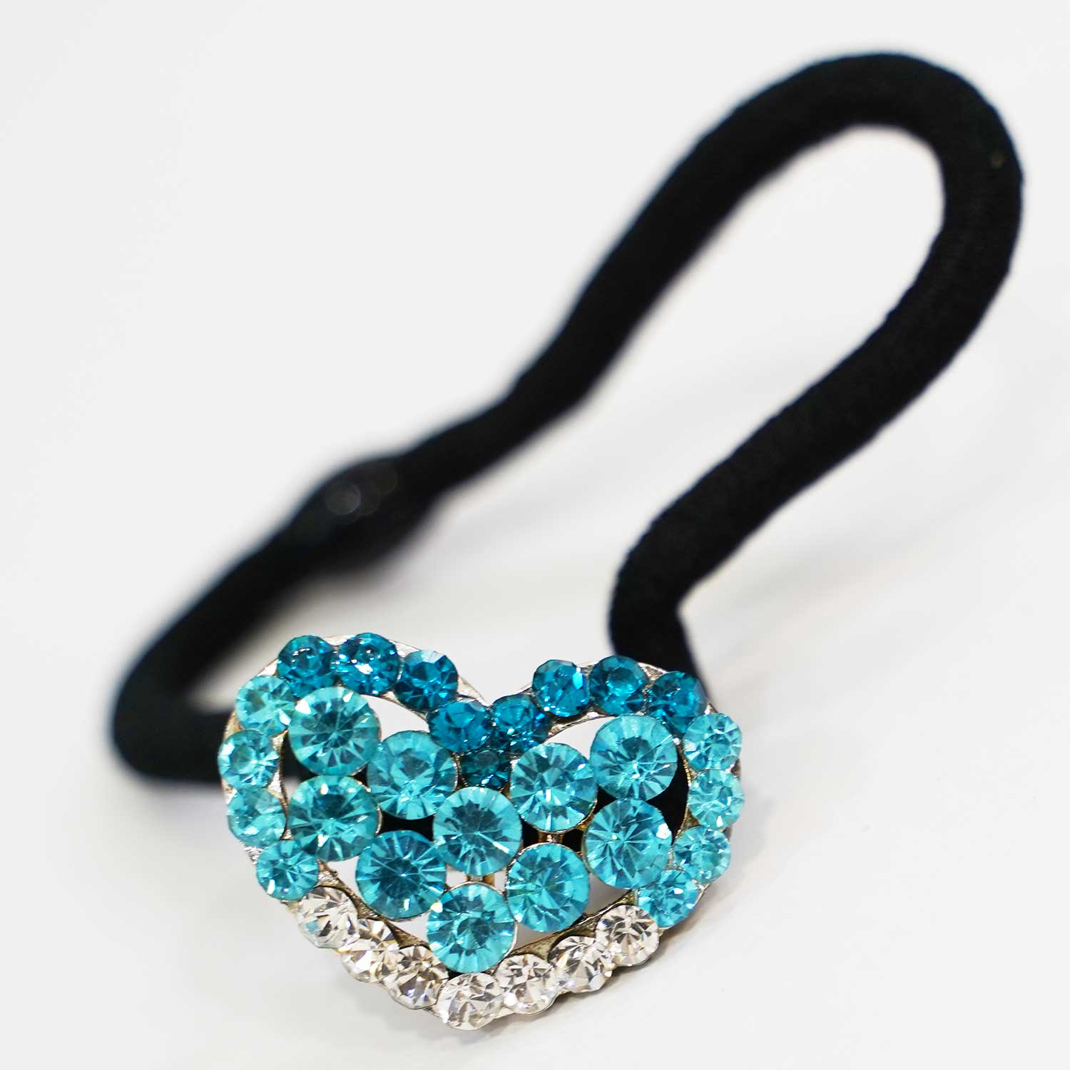 キラキラのラインストーンが綺麗なヘアゴム アクアマリン&カプリブルー ラインストーン ハート hg-h53