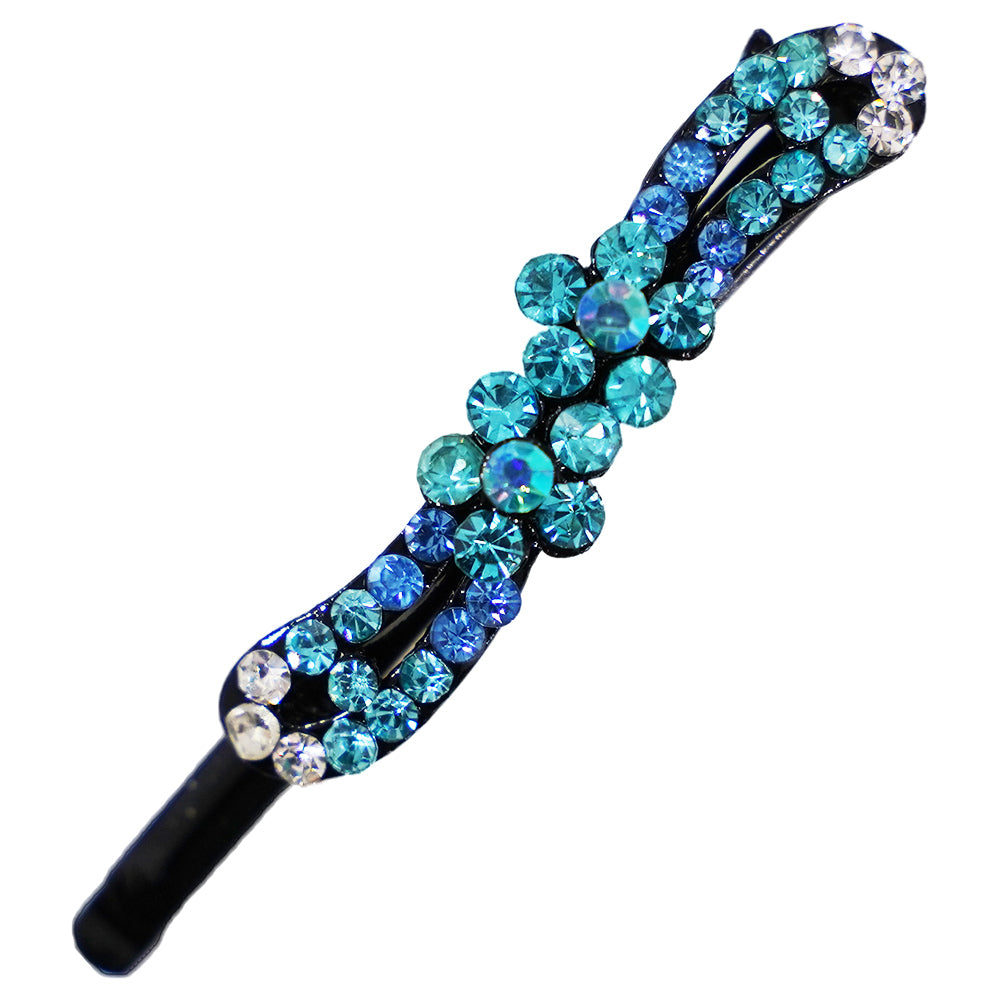 キラキラのラインストーンが綺麗なヘアピン 1本 アクアマリン ラインストーン フラワー hp10034